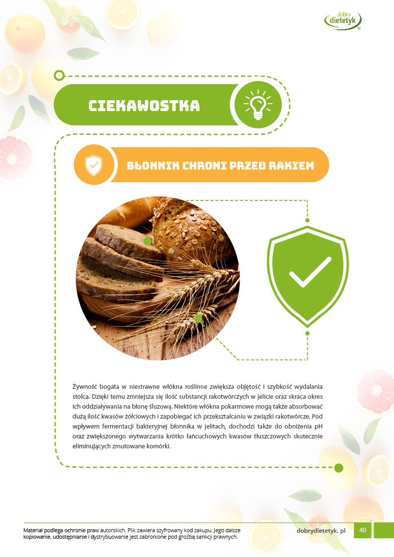 Dodatkowo do opracowanego planu dietetycznego otrzymasz atrakcyjnie przygotowane ciekawostki i wiadomości żywieniowe, które mam nadzieję pozwolą Ci zrozumieć wiele spraw związanych z nurtującym Cię problemem, a także przyczynią się do zwiększenia ogólnej wiedzy żywieniowej.