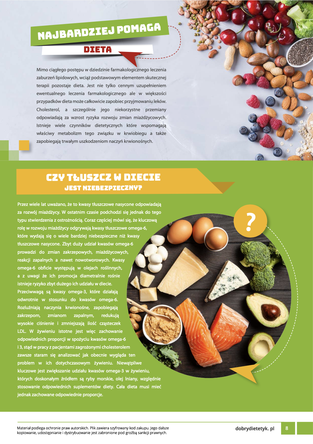 Dodatkowo do opracowanego planu dietetycznego otrzymasz atrakcyjnie przygotowane ciekawostki i wiadomości żywieniowe, które mam nadzieję pozwolą Ci zrozumieć wiele spraw związanych z nurtującym Cię problemem, a także przyczynią się do zwiększenia ogólnej wiedzy żywieniowej.